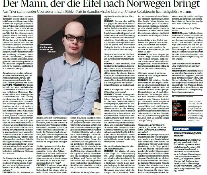 Interview im Trierischen Volksfreund zu meiner Übersetzung von Thure Erik Lunds Das Grabenereignismysterium